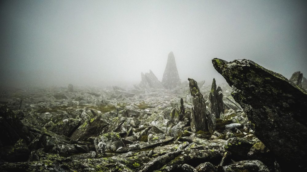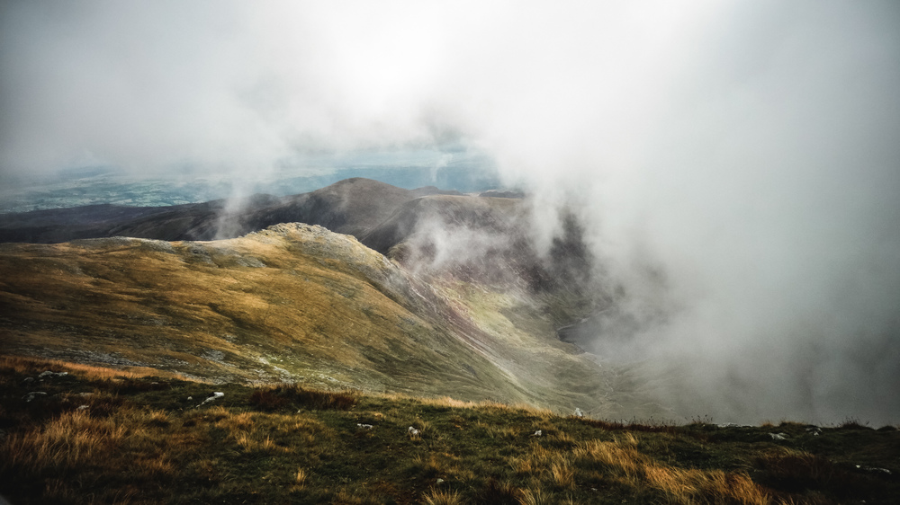 The ascent is tough and slow, but compared to the speed I managed with my backpack across the Carneddau and Glyder ranges we were going blazingly fast! We had hoped the clouds would clear when we got to the top, but this was not to be. Still eerily beautiful once we got to the top and we were pretty much the only people there at that time.