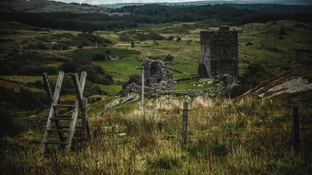 After the tough start to the day, the second leg of the actual loop is much shorter and easier than the first leg the day before. That said, you start by running down into the valley you can see from the hostel, then straight back up on the far end. After you cross that ridge you ran for a bit across an open meadow and then across a forest. When I did this run, half of this forest had been chopped down or blown over and it was incredibly muddy / boggy to cross. Hopefully when you go on a drier few days it will not be quite as bad. After that you run back onto an actual path / trail and follow that past the ruins of Dolwyddelan Castle. You can actually go inside and up the tower, so I suggest you do that and rest your legs a bit and maybe have some food from your pack.