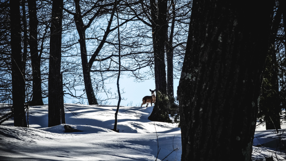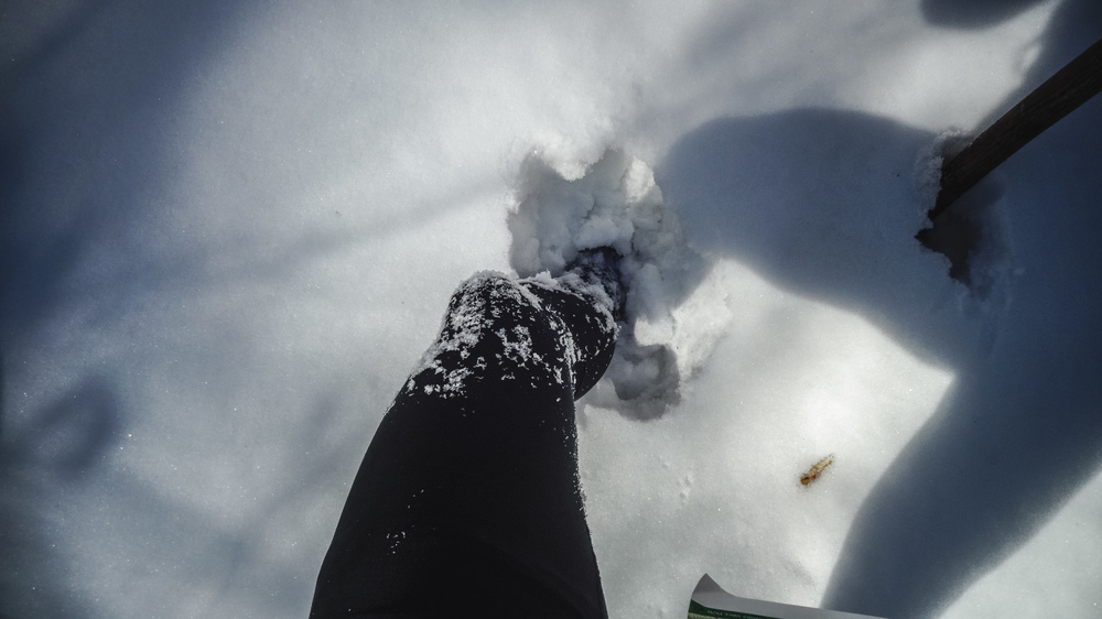 Another problem with this section was that the snow was all fresh, with no previous foot traffic to have compacted it. I went down knee deep and running was impossible. This was an incredibly tough and slow section. All in all it was just 3/4 of a mile, but it took me a long time. It got a bit easier after I had reached the top of the hill: on the other side there were deer tracks that made my way down a bit easier. Still: I would definitely have needed snow shoes for this section.